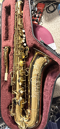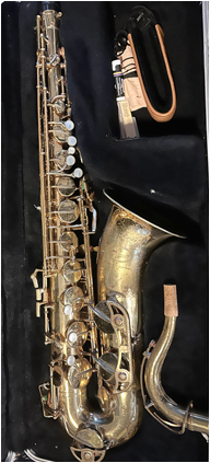 SOLD Selmer Mark VI Tenor, #210186 (1973). Late model, still kicks! Big, full sound for this vintage! Real player’s horn here! 60+% lacquer remaining. It is without a doubt Original Lacquer without a doubt, has a spotty finish. Belonged to a long time personal friend and ex-student of mine. Completely and newly repadded by me with high quality Prestini pads and vinyl resonators. No trauma or serious dent work. Plays loud, fast, and resonant. Good price on this players tenor! $6500.00 |