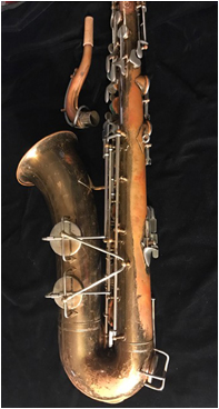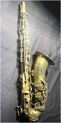 Martin Handcraft, #78744 (1926) Early Handcraft model, these are rare as Martin mainly made altos before the Committee and then The Martin Series. As is so many of these, it has been relacquered, a long time ago. Engraving still clear. Has some lacquer missing, the engraving is clear. Some repaired small ding/dent work on the bottom bow. Neck appears to have its tenon resoldered. Needs pads, will repad to order. $900 as is $1400 with new pads. Comes in a nice hard flight type of shoulder case. Kind of a collector’s item. Vintage, classic, velvety full sound! |