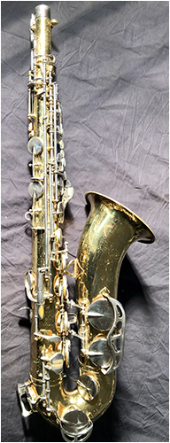 SOLD Selmer Mark VI Tenor, #210186 (1973). Late model, still kicks! Big, full sound for this vintage! Real player’s horn here! 60+% lacquer remaining. It is without a doubt Original Lacquer without a doubt, has a spotty finish. Belonged to a long time personal friend and ex-student of mine. Completely and newly repadded by me with high quality Prestini pads and vinyl resonators. No trauma or serious dent work. Plays loud, fast, and resonant. Good price on this players tenor! $6500.00 |
